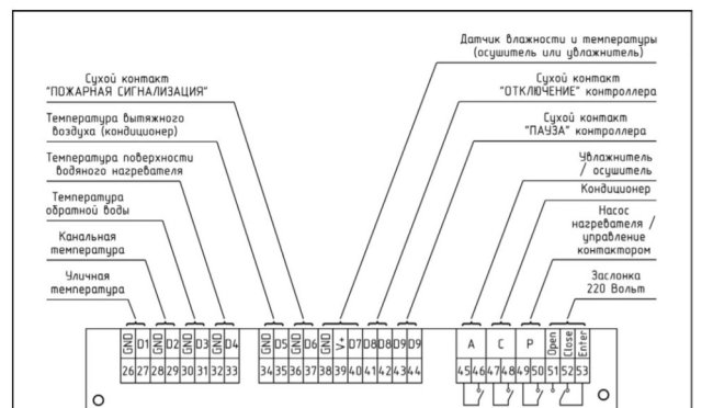 Контакты 43-44 платы управления ставят вентмашину в режим паузы, что равносильно выключению машины. Пока контакт замкнут, машина выключена, при размыкании машина включится.