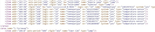 Эти самые серийные номера элементов можно посмотреть, почему-то, только в том же незаменимом редакторе логики. Нужно найти строчку , там будет вписан серийный номер (sn). Эти номера я в рамках преднастройки системы переписываю в таблицу с цоколёвкой контроллера Larnitech.