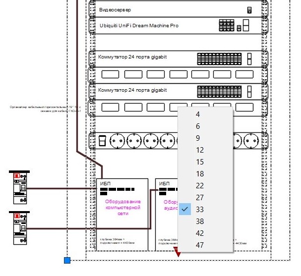 Слаботочный шкаф формата 19″ — динамический блок, у которого мы можем быстро менять высоту в юнитах, выбирая её из списка. Такой блок создать уже не так просто, так как там есть и операция массива, и линейный размер, но его несложно найти в интернете. Наполняя шкаф, можно легко менять его высоту.