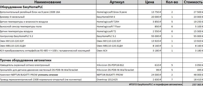 Вот расчёт оборудования Умного Дома: