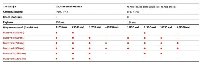 Шкафы серии U аналогичны CA, но встраиваемого монтажа. Размеры у них, конечно, уже не такие ровные, зато в наименованиях моделей первая цифра — количество рядов, вторая — ширина ряда. В общем, ищите нужную модель по каталогу, чтобы не было путаницы. Его легко найти по запросу «каталог abb comfortline».