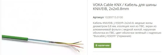 Специальные кабели для шины KNX обычно имеют диаметр 0.8мм.