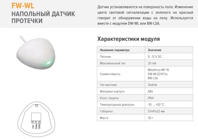 В системе Larnitech есть модуль работы с датчиками протечки воды DW-WL02, стоимость которого 347 евро. Возможности: 4 выхода для клапанов, 4 зоны для датчиков протечки воды (до16 датчиков), 2 входа сухих контактов для настраиваемых кнопок. То же самое, что и модуль Wirenboard, по сути, но несколько дороже.