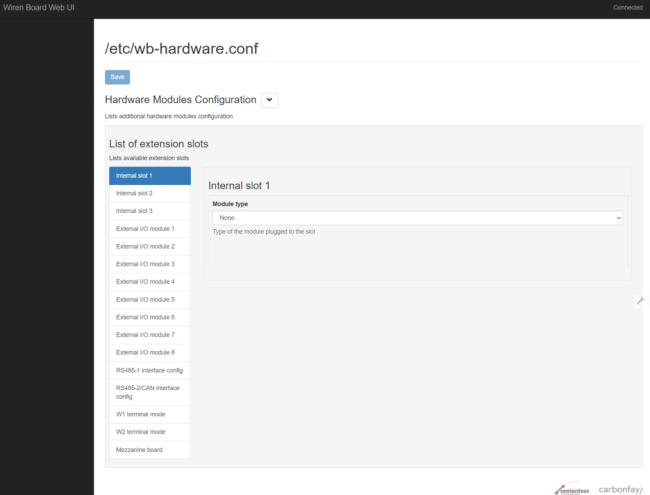Как всегда при начале работы с устройством хочется обновить его прошивку. В случае каких-то проблем первое, что спросит техподдержка, это последняя ли у меня версия прошивки. Способы обновления прошивки и ссылки для скачивания последней версии на странице Обновление прошивки. Вот ссылка на файлы прошивок: http://fw-releases.wirenboard.com/?prefix=fit_image/stable/