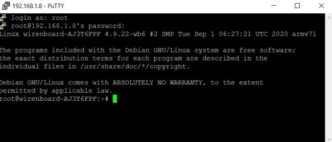 В открывшемся окне вводим логин root и пароль wirenboard.