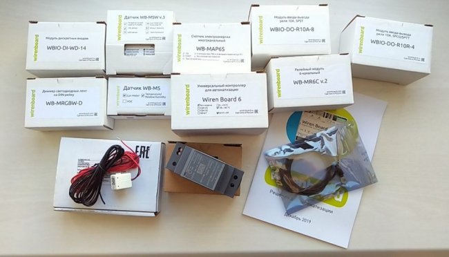 Комплектация у всех устройств простая, почти везде это только само устройство. Ссылка на полную инструкцию написана на модуле. Это правильно, так как инструкция большая, к тому же, может дорабатываться, печатать её и складывать, чтобы поместилась в каждую коробочку, нет смысла. К контроллеру Wirenboard в комплекте идёт маленькая клеммная отвёртка (всегда очень уместно, у меня коллекция таких из разных устройств). Только в комплекте с модулей измерения мощности инструкция по установке токоизмерительных трансформаторов — тоже правильно, там есть определённые тонкости, на которые важно обращать внимание при подключении.