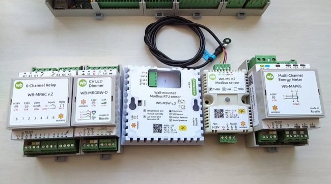 Таким же образом я добавил модуль реле WB-MR6C v.2 и модуль управления светодиодной лентой WB-MRGBW.