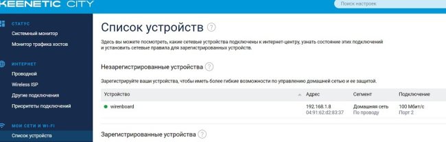 После настройки контроллера в качестве Wi-Fi клиента в списке подключенных к роутеру устройств появился ещё один контроллер Wirenboard с другим IP адресом.