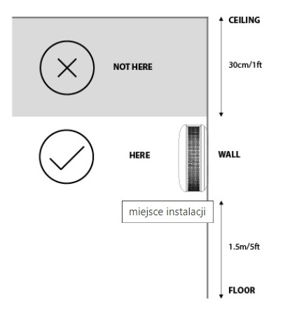 Датчики СО нельзя располагать на потолке, рядом с источником огня, на улице, при температуре ниже 0 градусов, в месте с высокой влажностью. То есть, в парилку датчик угарного газа ставить не надо (туда надо поставить датчик температуры, специальный для сауны).
