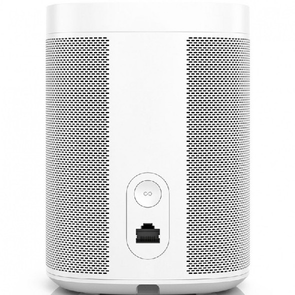 Sonos One — самая небольшая колонка. Это мультирум-колонка «всё в одном». Там и усилитель, там и динамик (несколько динамиков, а самом деле). Это колонка, которая идеально подходит для санузла, во-первых, потому, что она с защитой от брызг, во-вторых, она компактная. Выдаёт хороший бас. Можно установить в помещении площадью до 12 метров. Если хочется большего, то можно поставить две колонки и в программе объединить их в стерео пару.