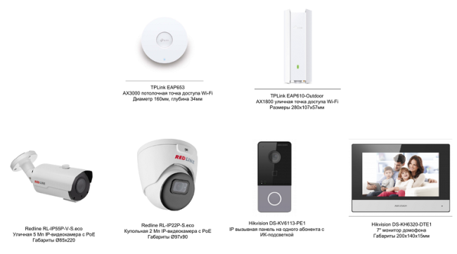 Подробный перечень оборудования со всеми моделями. Никакого «камера уличная 2.8мм», а точный артикул.