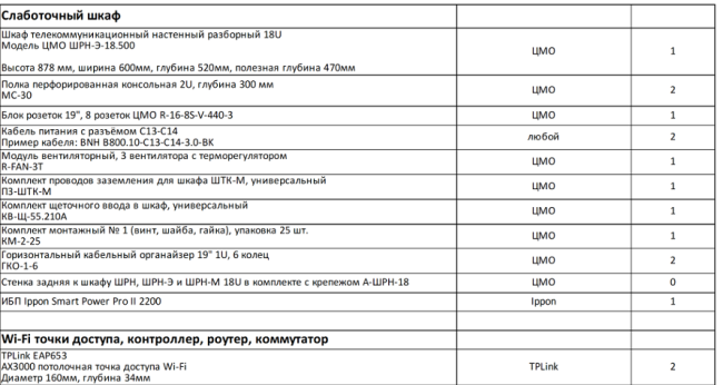 Зачастую проектировщики не пишут модели. Говорят, что инсталлятор сам подберёт оборудование точнее. Я в своих проектах ориентируюсь на то, что заказчик может всё приобрести самостоятельно, поэтому, чтобы сэкономить время, пишу всё подробно, вплоть до модификаций оборудования и пояснений о том, где нужно дополнительно согласовать цвет или способ монтажа. Включаю в перечень даже коннекторы, колпачки коннекторов и болты для установки коммутатора в 19″ шкаф.