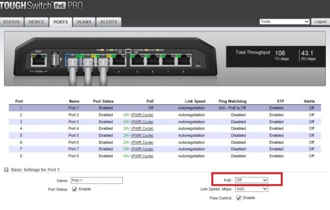 Третий вариант — управляемый PoE коммутатор с возможностью отключения питания отдельных портов через web интерфейс. Это, в частности, коммутаторы Ubiquiti Switch, там в интерфейсе можно включать и отключать PoE.