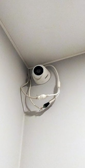 А вот пример того, как выглядит установленная камера, для которой не было заранее продумано подключение: