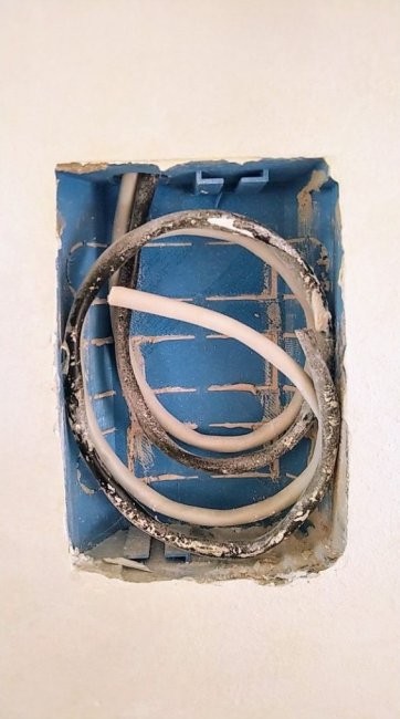 Вот так выглядит установленная в бетон монтажная коробка для панели с выведенными в неё кабелями: