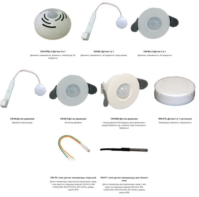 CW-M — датчик движения, CW-MLI — движения и освещённости + ИК-передатчик.