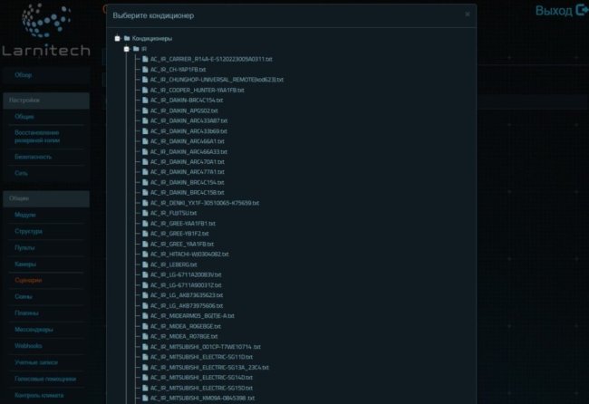 Выбор модели управляемого кондиционера. В контроллере достаточно большая готовая база команд.