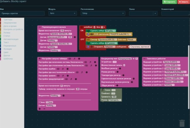 В сценариях есть понятие вэбхук. Это отправка команды по определённому IP адресу. Мы таким образом можем управлять любым устройством, имеющим возможность управляться таким образом, это достаточно много моделей аудио-видео оборудования.