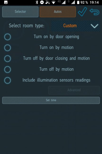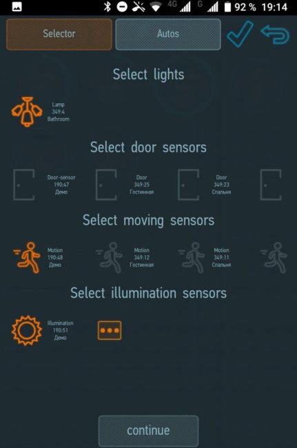 А вот мастер настройки автоматизации. Выбираем группу света и ассоциируемые ей датчики.