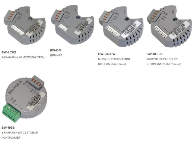 Прямо в подрозетниках мы можем организовать управление светом, шторами, подключать датчики протечки. Это может быть достаточно удобно. Главное провести в нужные места шинный кабель от контроллера. В таких модулях встроенные реле имеют меньшую мощность, чем в модулях на DIN рейку, это надо учитывать.