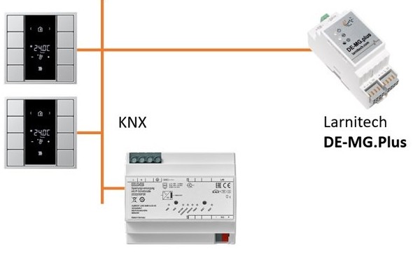 Контроллер системы DE-MG или DE-MG.plus осуществляет функцию IP шлюза (настройка всех модулей и управление системой с любых устройств) и всё сценарное управление. В системах KNX есть отдельные модули для реализации IP шлюза, для подключения к компьютеру по USB, для настройки и для работы в качестве блока логики, что мне в KNX всегда не нравилось, в отличие от систем с контроллером.