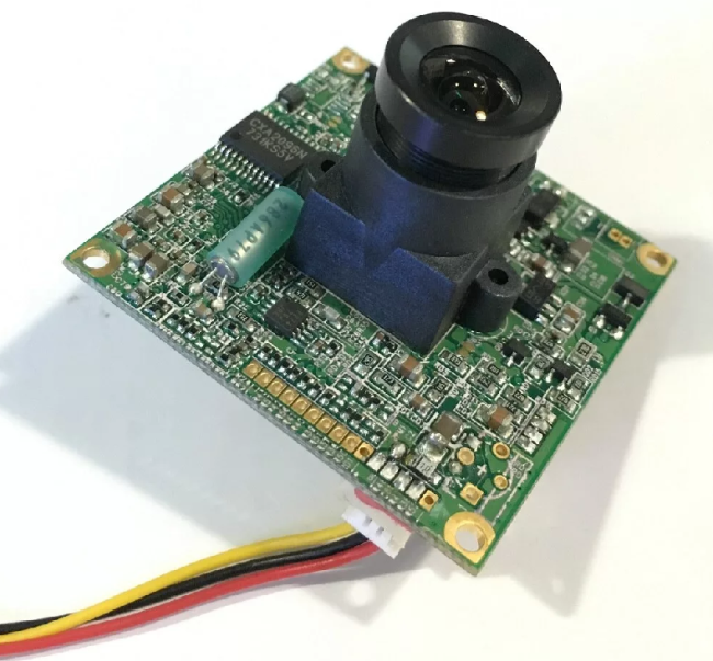 Это квадратная плата, в центре у неё светочувствительная матрица, а на матрице объектив. Объектив определяет угол обзора камеры. От камеры идут три проводочка: красный для +12 вольт, чёрный для земли и жёлтый для видеосигнала. Подключаем к чёрному и красному 12 вольт, к жёлтому и чёрному разъём RCA, подключаем к телевизору и получаем картинку — готово. Остаётся только вставить камеру в какой-нибудь корпус: купол, буллет или уличный термокожух с влагозащитой и подогревом.