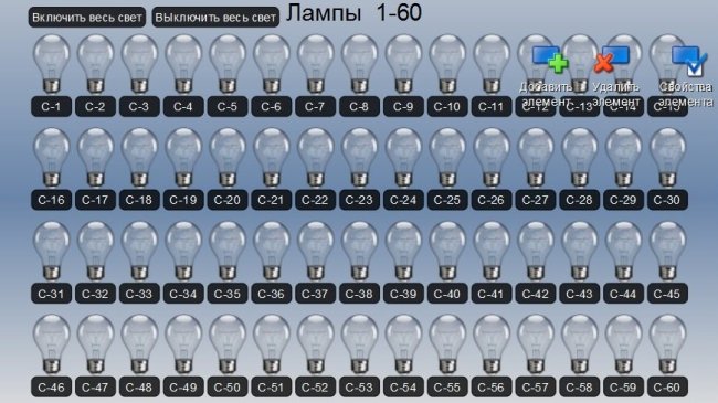 В инженерном интерфейсе заходим в меню Освещение — Выключатели. Видим такую картину: