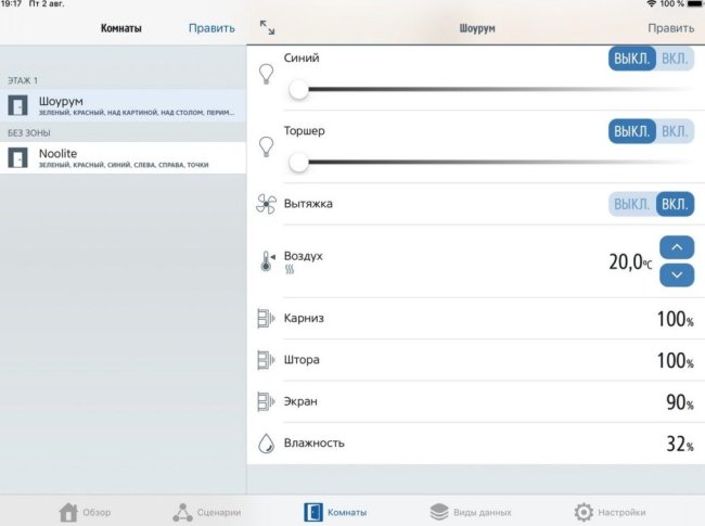 Можно делать сценарии автоматизации, в которых будут участвовать не только устройства, подключенные к контроллеру EasyHome, но и прочие совместимые с HomeKit, а также OpenHAB.