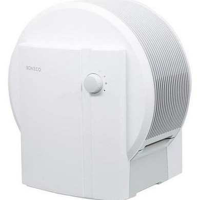 Это самый простой прибор, его можно легко приобрести по цене от тысячи рублей в любом магазине бытовой техники. Представляет собой ёмкость с водой на пару литров и ультразвуковой испаритель с вентилятором. Вода подаётся на пластину испарителя, которая очень быстро колеблется, превращается в пар и вентилятором выдувается наружу. Обычно на корпусе есть регулятор мощности испарителя. На более продвинутых моделях есть встроенный гигростат — датчик влажности воздуха, который отключает прибор, когда влажность достигает нужного значения.