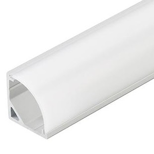Эта вещь известна уже давно. Позволяет создать неяркий свет. Мне не очень нравятся конструкции с подвесным потолком, поэтому я сделал по углу между стеной и потолком угловой профиль с круглым матовым рассеивателем, получилось очень здорово. Особенно с возможностью регулировать яркость ленты с контроллера. Угловой профиль с рассеивателем выглядит вот так:
