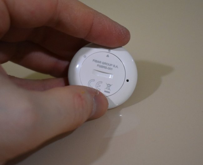 Сзади у датчика крышка, которая снимается достаточно легко даже без инструмента, под ней батарейка.