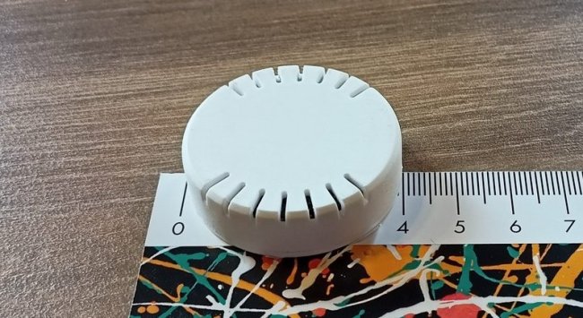 Вот датчик параметров воздуха Larnitech CW-CO2. Содержит сенсоры СО2, температуры, влажности, движения, освещённости, ИК-передатчик. Есть модификация без СО2. Размеры 85х85хх35мм.