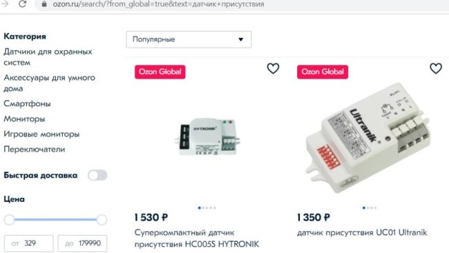 Часто на сайтах производителей и магазинов есть разделение по категориям датчиков движения и датчиков присутствия. Ну и просто по запросу «датчик присутствия» мы можем найти много разных товаров. Возникает впечатление, что датчик присутствия умеет анализировать инфракрасный фон помещения и понимать, что в нём есть человек, который не двигается. Или анализировать объём воздуха в помещении (есть даже такое название датчиков движения, которое я терпеть не могу — «объёмник»). На самом деле это просто датчик движения с задержкой отключения, плюс иногда он более чувствительный.