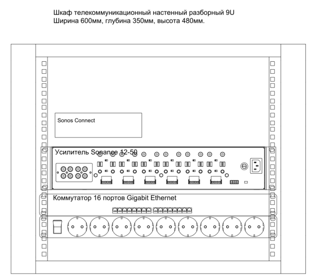 Оставлено место для файлового сервера и блоков питания точек доступа Wi-Fi.