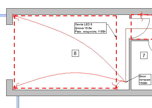 Надо заранее думать, где будут размещены блоки питания лент и посчитать их мощность и ток.