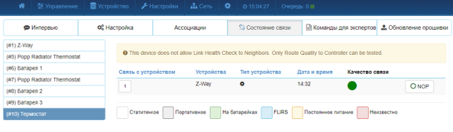 ExpertUI — это более продвинутый пользовательский интерфейс, в котором больше всяких настроек. Он тоже русифицирован. Вот, например, отчёты по состоянию связи со всеми устройствами: