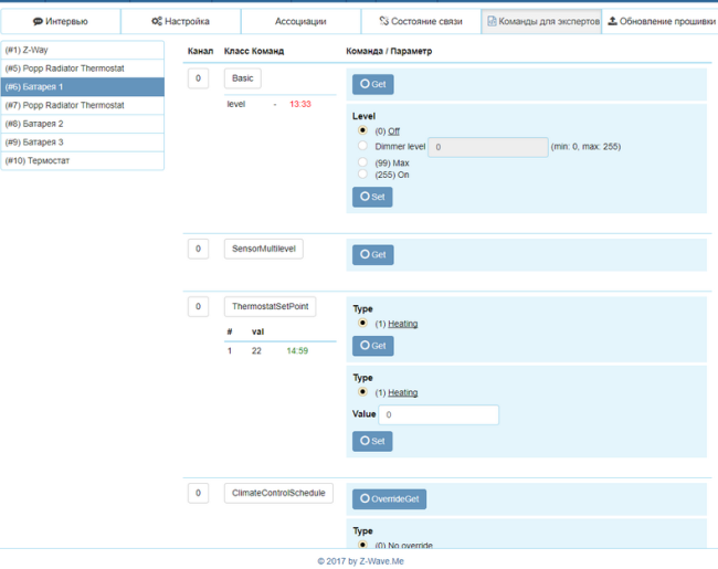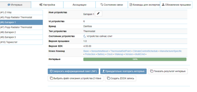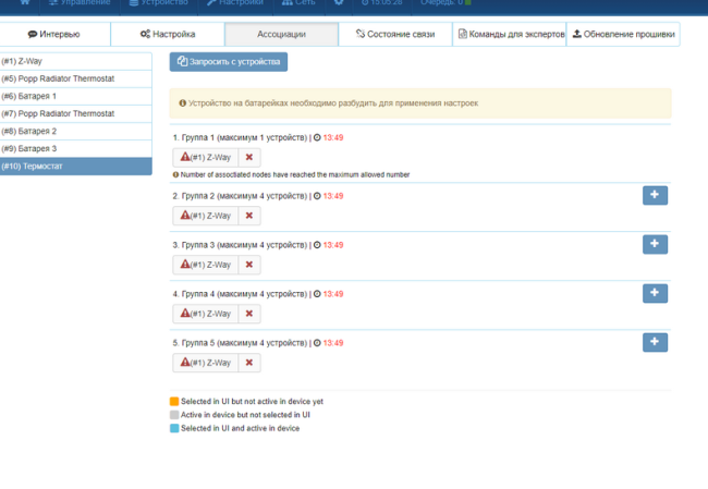 Можно получать очень подробную информацию по всем подключенным устройствам, лог событий опроса, ассоциации устройств, обновление прошивки (если оно возможно для устройства). Ассоциации устройств: