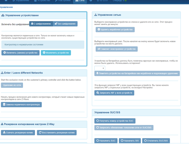 Вот общие настройки контроллера, включая резервное копирование настроек: