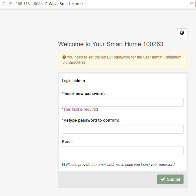 Через microUSB подключаю контроллер к сети. Он начинает раздавать Wi-Fi сеть RPi, я к ней подключаюсь. По умолчанию IP адрес устройства 192.168.115.1. Порт 8083. Это написано в инструкции, либо можно обнаружить программой сканирования портов.