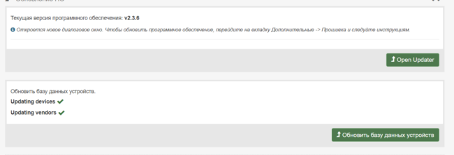 В течение 5 минут контроллер обновился и снова попросил залогиниться. Я убедился, что версия прошивки последняя (вдруг после обновления он ещё обновление предложит). Помимо обновления прошивки есть ещё обновление базы устройств.