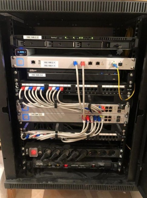 Оборудование слаботочных систем в 19-дюймовом шкафу может выглядеть так: