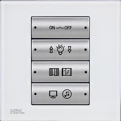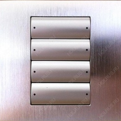 Верхняя кнопка включает или выключает свет, вторая регулирует яркости, третья отвечает за шторы, четвертая за звук.