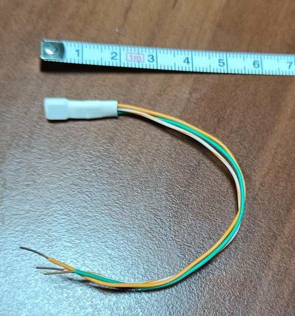 Длина кабеля 2 метра. Моножилы красного, чёрного и жёлтого цветов для питания, земли и данных. Четвёртая жила в кабеле тоже есть, она не используется.