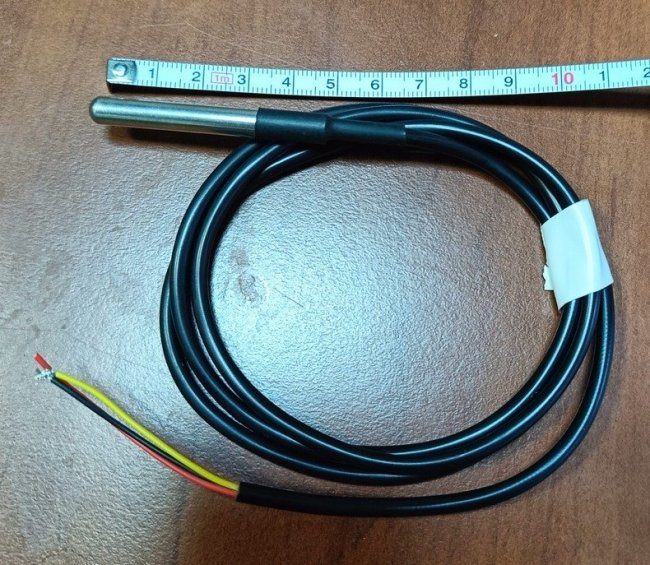 Стоимость такого изделия начинается примерно от 150 рублей оптом на Aliexpress. Сенсор находится в металлической гильзе, загерметизирован термоусадкой, к нему припаян длинный кабель. Обычно можно заказать датчик с кабелем нужной длины.