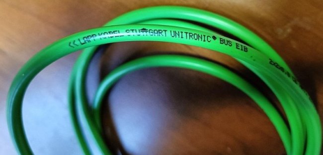 Кабель используется не абы какой, а Lapp для шины EIB/KNX, 2x2x0.8. Достаточно жёсткий и толстый, при проталкивании в трубу сминаться не будет. Экранированный.
