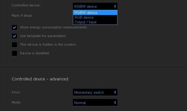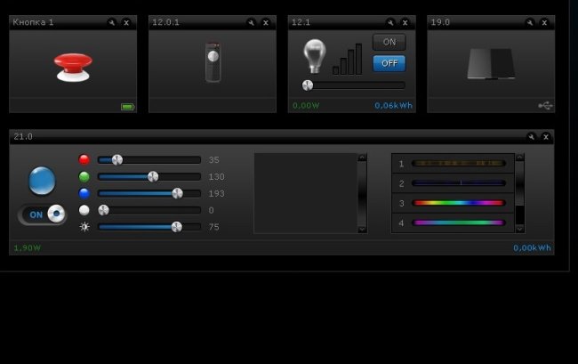 Вот так в списке устройств выглядит управление RGBW лентой:
