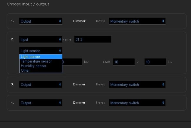 В настройках задаём минимальное (соответствующее 0 В) и максимальное (соответствующее 10 В) значение входного напряжения и диапазон входных напряжений. Модуль удобно работает с внешними датчиками температуры, влажности и освещенности, но можно подключить вообще любой датчик.
