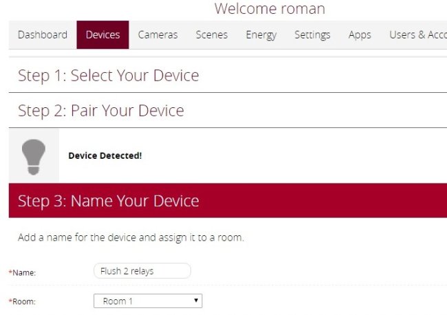 Устройства появилось целых 3: Flush 2 relays, Appliance Module и Appliance Module 1. Второе и третье — это соответственно первое и второе реле в модуле. Flush 2 relays автоматически включается при включении второго или третьего устройства. Если вручную включить Flush 2 relays, то оба выхода включатся. К счастью, все устройства можно переименовать, чтобы не путаться.