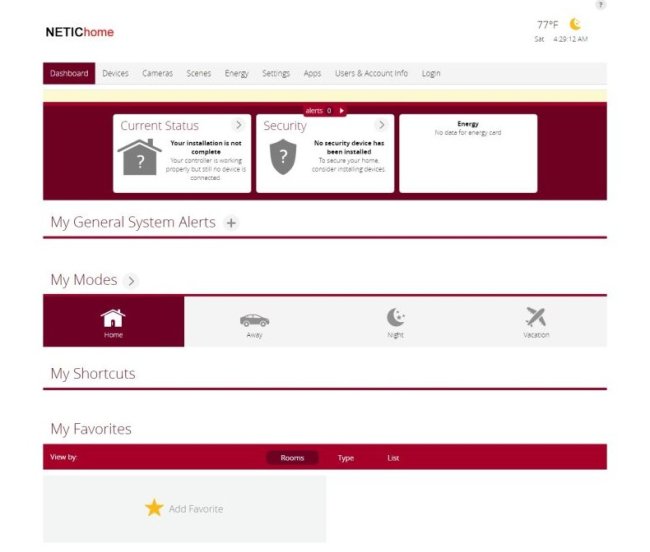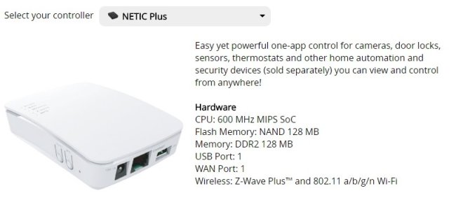 Помимо Fibaro Home Center есть ещё огромное количество контроллеров. Home Center из них самый дорогой и функциональный (и русифицированный!), но для многих (наверное, даже для большинства) задач подойдёт более простое решение. Контроллер Netic1 стоит немногим более 14 тысяч рублей. Его комплектация: сам контроллер, размером с пачку сигарет, патч-корд и адаптер питания 12В 1А. На контроллере разъёмы Ethernet, USB и питание. Спереди индикаторы Service, Wi-Fi, Z-Wave, WAN, Power. Я подключил контроллер к локальной сети и включил. Подключился к новой Wi-Fi сети, которую стал раздавать контроллер, пароль написан на нём. В этой сети сразу есть интернет. Поиском по локальной сети нашёл контроллер и зашёл в его интерфейс. Система сообщает следующее: Пока это кажется удобным. Основное окно интерфейса выглядит так. Не очень интересно, пока нет добавленный устройств Z-Wave. Devices — список устройств. Пока он пустой. Cameras предлагает добавить камеру. Я выбрал сканирование сети для поиска IP камеры. У меня три IP камеры разных производителей (Axis и Active Cam), ни одну из них контроллер не нашёл. Попробовал добавить вручную — спрашивает путь к JPG. Очевидно, H264 или что-либо ещё контроллер не поддерживает, только Motion Jpeg. Пока этот пункт трогать не буду, так как путь не знаю. Scenes и Energy пока не смотрю. Это, очевидно, создание сценариев и контроль энергопотребления. Настройки Создал одну комнату с названием Room 1. Задал своё местоположение — Россия, Санкт-Петербург. В верхнем правом углу время и текущая погода сразу стали правильными. Правда, температура в градусах по Фаренгейту, поменять на Цельсий так и не смог. Как и поменять время на 24-часовой формат. В настройках сети задано, что контроллер сам подключается к интернету. Там же можно поменять имя и пароль создаваемой им сети Wi-Fi или вообще её отключить. Можно задать IP адрес контроллера и даже параметры его собственного DHCP сервера. То есть, контроллер может работать как маршрутизатор сети. Настройки Z-Wave позволяют менять параметры сети, интервал опроса, делать бэкап или сброс сети. Есть возможность автообновления прошивки. Новой прошивки контроллер не нашёл. Плагины Netic Самый интересный пункт меню Apps. Это дополнительные приложения, которые определяют, с чем может работать контроллер помимо Z-Wave устройств. Список достаточно большой: Из самых интересных пунктов: Sonos (мультирум система) Netatmo (уличная погодная станция) Say the weather (не пробовал, но догадываюсь, что делает) Virtual Putdoor Temperature (создаёт виртуальный датчик уличной температуры, ориентирующийся на прогноз погоды. Такой же виртуальный датчик есть по умолчанию в Fibaro Home Center) Wake-On-LAN (включение компьютера сетевой командой) DUNE HD (управление медиаплеерами Dune) Samsung TV Remote (правда, последняя версия от декабря 2014 года) И ещё много разный плагинов к видеокамерам. Apple TV или голосового управления не нашёл. Регистрация пользователя Netic Многие возможности системы доступны только после регистрации контроллера на сайте netichome.com, включая бэкап настроек в облако. Доступ к контроллеру через приложение на iOS тоже требует регистрации, так что выполним её через интерфейс контроллера. Контроллер спрашивает меня, что он такое: Netic или Netic Plus, и показывает, как должен выглядеть тот и другой. У меня Netic Plus. Вот, кстати, его параметры: Затем ввожу логин и пароль (не меньше 8 символов и с цифрой). Вроде, готово. Теперь на сайте netichome.net я могу ввести имя и па