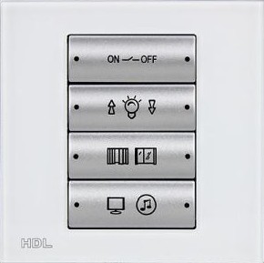 Идеальный принцип расстановки выключателей заключается в том, чтобы любой гость мог посмотреть на выключатель и догадаться, что он включает. Лично я считаю, что максимальное количество клавиш в одном блоке должно быть не больше 4-х, и то, если две из них управляют шторами и имеют соответствующие пиктограммы. Если больше, то они все должны иметь крупные и понятные надписи или пиктограммы. Вот панель HDL: